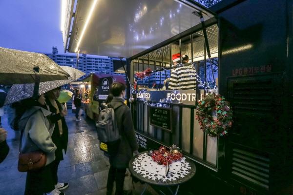 푸드트럭에서는 마라볶음 쉬림프, 쿠바 샌드위치, 피자 등의 세계 각국의 음식은 물론 크리스마스 색으로 장식된 산타츄로스, 트리를 연상시키는 크레페와 눈꽃치즈를 더한 쿵파오새우 등 크리스마스 특별 메뉴도 만날 수 있다.