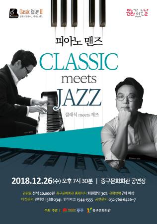 인천 중구문화회관은 12월 문화가 있는 날을 맞아 오는 26일 수요일 오후 7시 30분부터 클래식 피아니스트와 재즈 피아니스트의 아주 특별하고 아름다운 하모니를 감상할 수 있는 "피아노 맨즈"공연을 중구문화회관 공연장에서 선보인다.