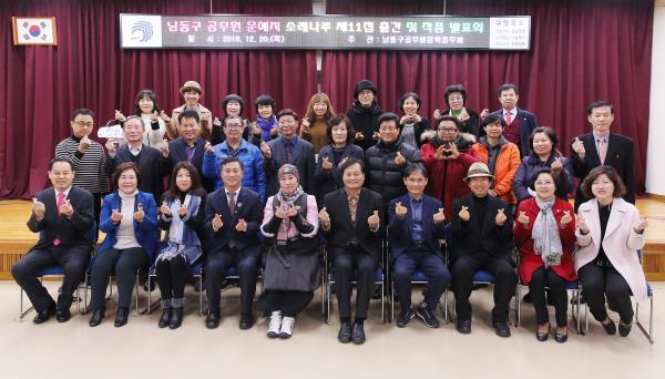인천남동구공무원문학동우회는 최근 남동구청 소강당에서 이강호 구청장, 최재현 구의회 의장과 구의원, 최제형 인천시문인협회장 및 회원 100여명이 참석한 가운데 ‘소래나루 제11호 출판기념회’를 개최했다고 21일 밝혔다.
