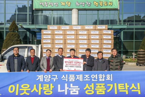 인천 계양구식품제조협의회가 지난 20일 계양구청에 불우이웃돕기 성품을 기탁했다.