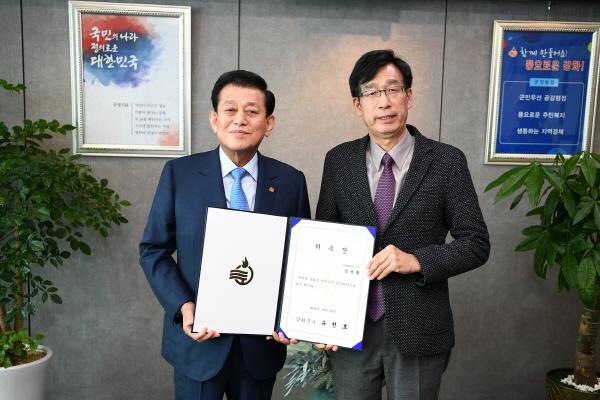 유천호 군수는 지난 20일 우선 남북교류와 관련한 정책제안 및 대북교류협력 창구 역할을 수행하기 위해 안양대학교 장용철 통일사회정책연구소 소장을 ‘강화군 남북교류 전문위원’으로 위촉했다.