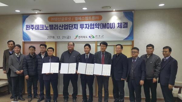 전라북도와 완주군은 12. 21.에 완주군청 군수실에서 박성일 완주군수, 나석훈 전라북도 경제산업국장 등이 참석한 가운데 ㈜영산글로넷과 전라북도 완주군에 신규 공장 확장 투자에 따른 신규 투자를 확정짓는 투자협약을 체결했다.