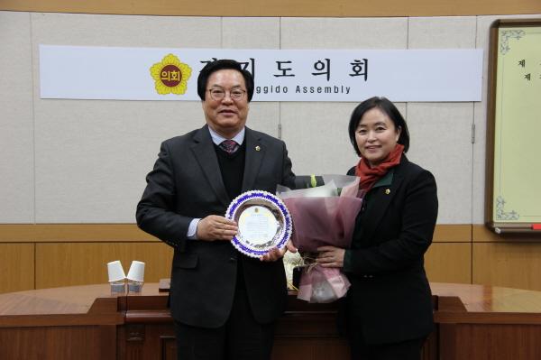 경기도의회 제1교육위원회 천영미 위원장은 제332회 정례회 종무식인 21 도의회 제1교육위원회 회의실에서 평소 열정적인 의정활동과 탁월한 입법성과를 통해 위원회 위상 제고 및 교육 발전에 공헌한 방재율 의원을 ‘최우수 의원’으로 선정했다.