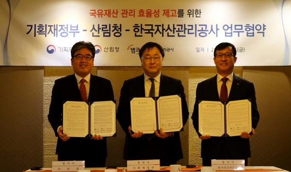산림청은 21일 서울 종로구 세종문화회관 소회의실에서 기획재정부, 한국자산관리공사와 ‘국유재산의 효율적인 관리를 위한 업무협약’을 체결했다고 밝혔다.