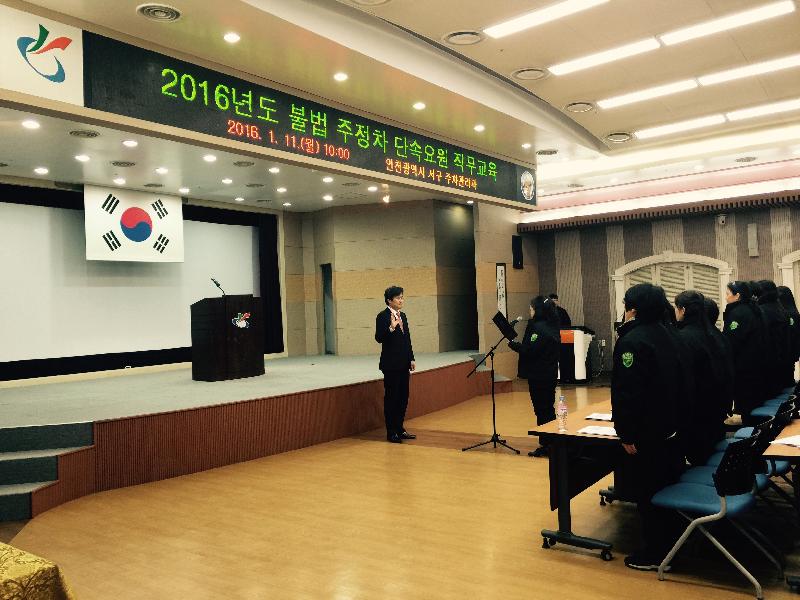 이날 불법 주·정차 단속요원들은 청렴실천결의문을 낭독하는 등 공정하고 비리 없는 행정구현을 위한 결의를 다졌다. 또한 직무교육은 2016년도 불법 주·정차 단속종합계획, 도로교통법 및 업무수행에 필요한 직무요령, 민원마찰 대비 응대기법 및 친절교육에 대한 주요사례를 중심으로 이뤄졌다.