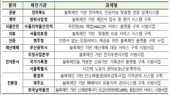우선공공선도 시범사업은 블록체인 기술을 공공부문에 선도적으로 도입·적용하여 공공서비스를 혁신하고 초기시장을 창출하기 위한 것으로, ’18년 6건에서 ’19년 12건으로 확대하여 추진한다.