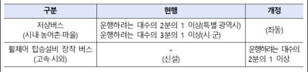 노선 여객자동차운송사업 면허를 우선 부여하는 운행대수 기준에 기존 저상버스외에 휠체어 탑승가능한 고속·시외버스를 포함했다.