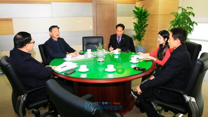| 21일 오후, 인천관광공사 사장실에서 민민홍 사장과 기자들이 송년 기자간담회를 하고있다. |
