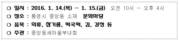 통영 중앙동 새마을부녀회, 『2016 설맞이 사랑나눔 바자회』개최