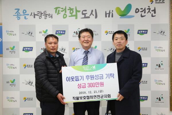 작물보호협회에서는 지난 21일 연천군을 방문해 어려운 이웃에게 성금 300만원을 전달했다. 성금 300만원은 경기사회복지공동모금회를 거쳐 어려운 이웃이 따뜻한 겨울을 날수 있도록 전달 할 예정이다.