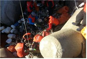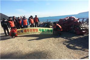 거제시 새우조망자율관리공동체(위원장 서경수)는 지난 12일 오전9시부터 2시간여 동안 회원26명과 함께 일운면 선창마을 지세포항 방파제주변을 돌며 구석 구석 집적되어 있는 폐스티로폼, 목재, 플라스틱, 비닐류 등 해양쓰레기 500kg를 수거하며 바다사랑을 몸소 실천했다.