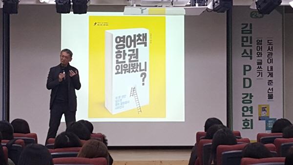 이어 진행된 강연회에서는 김민석 MBC 피디가 강사로 초청돼 ‘영어와 글쓰기, 도서관이 내게 준 선물’을 주제로 도서관에서 다양한 분야의 책을 읽고 매일 글쓰기를 하는 것을 제시했다. 김민석 MBC 피디는 ‘영어책 한 권 외워봤니?’, ‘매일 아침 써봤니?’ 등 영어학습과 글쓰기 분야의 베스트셀러 저자다.