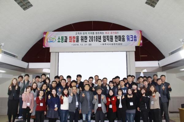 파주시시설관리공단이 지난 21일 홍원연수원에서 80여 명의 공단 임직원이 참여한 가운데 소통과 화합을 위한 2018년 한마음 워크숍을 성공적으로 개최했다.