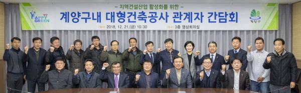 인천 계양구는 지난 21일 관내 공사 중인 대형건축 시공사와 대한전문건설협회 인천시회와의 간담회 자리를 마련했다.