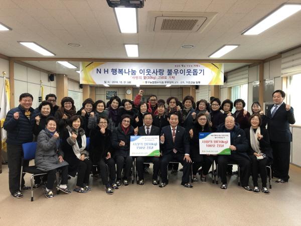 인천 동구 화수1.화평동에서는 중구농협화수지점의 주부대학 3기·5기, 가요교실에서 준비한 ‘사랑의 쌀 전달식’을 가졌다.