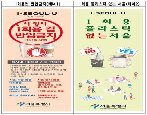 서울시가 지난 9월부터 시청 청사 내의 사무공간·회의실·매점·카페 등에서 일회용품 사용을 전면 금지해 온데 이어 오는 2019년 1월 1일부터는 테이크아웃 커피, 배달음식 등 일회용 종이컵이나 플라스틱을 청사 내로 반입하는 것을 전면 금지한다”고 밝혔다.