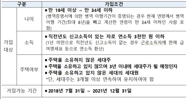 이를 반영한 청년 우대형 청약통장의 세부 가입 조건은 아래와 같다.