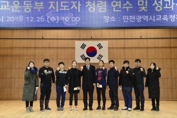 이날 도성훈 교육감은 청렴 연수 및 상여금 전달식에 참석한 운동부지도자들에게 “우리교육청이 국가권익위원회 주관 2018년 공공기관 청렴도평가에서 작년보다 4단계 상승한 2등급을 받았다”고 말했고,“인천시 대표로 출전하여 입상한 학생들이 꿈을 이루는 행복한 선수가 될 수 있도록 최선을 다해 지도한 운동부 지도자의 노고에 대해 매우 자랑스럽게 생각한다”고 말했다. 또한,“학생선수 양성에 꾸준한 지원과 열정을 다해 주신 학교장, 지도교사, 지도자, 학부모님들께도 감사의 마음을 전한다.”고 격려의 말을 했다.