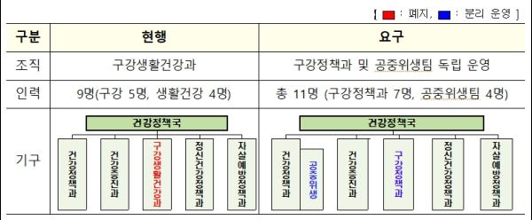 현 ‘구강생활정책과’에서 ‘구강정책과’로 분리