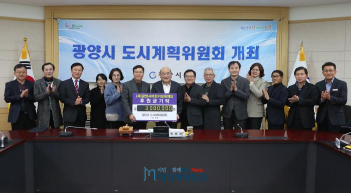 특히 도시계획위원회가 광양시에 설치된 90여 개 위원회 중에서 최초로 (재)광양시어린이보육재단에 기탁한 최초 사례로 눈길을 끌었다.