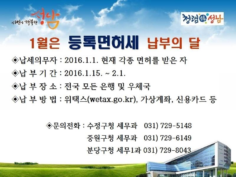 이번 정기분 등록면허세는 공장 등록 증가, 판교지역 사업장 신규면허 증가로 지난해보다 8861건 늘었다. 세액도 2억5300만원 늘었다.