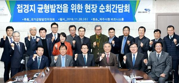 파주시는 4.27판문점 선언과 북미정상회담으로 한반도 평화와 번영의 대전환기를 맞았다. 이는 분단을 상징하던 도시에서 평화와 통일의 중심도시로 도약할 수 있는 기회가 됐다. 파주시는 지난 11월 28일 국가균형발전위원회 송재호 위원장 주최 하에 전국 기초자치단체 최초로 접경지 균형발전을 위한 현장 순회 간담회를 개최했다. 이 자리에서 최종환 시장은 통일경제특구 지정, 지하철 3호선 파주연장 예비타당성 조사 면제, 조리금촌선 국가 계획 반영, 접경지역 가스 공급 지원, 반환공여지 국가개발, 사격장 주변 피해대책, 방호벽과 철책선 제거, 금촌시장 주변 도시재생 추진, 애룡저수지 공연장 건립 및 남북공연 추진, 운정 다누림 복합커뮤니티센터 건립 등 10가지 사항을 국가균형발전위원회에 건의했다.