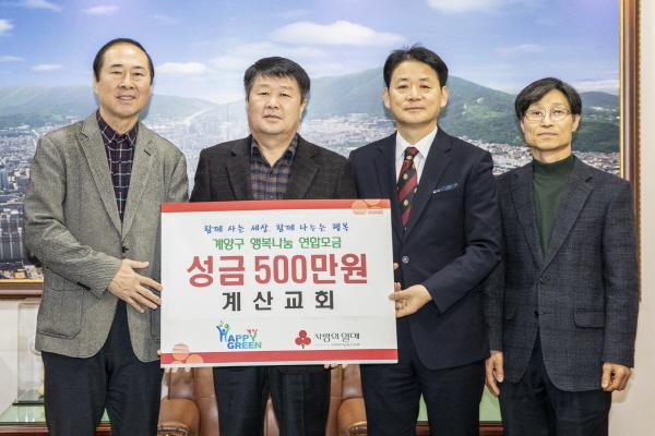 대한예수교장로회 계산교회는 지난 24일 ‘희망2019 따뜻한사랑나누기 캠페인’에 동참해 성금 500만 원을 계양구에 기탁했다.