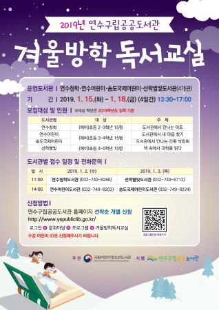 연수구립공공도서관은 다음달 15일부터 18일까지 2019년 겨울방학 독서교실을 운영한다.