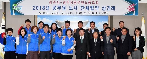 광주시와 광주시공무원노동조합은 지난 26일 시청 상황실에서 2018년 공무원 노사 단체교섭을 위한 상견례를 개최했다.