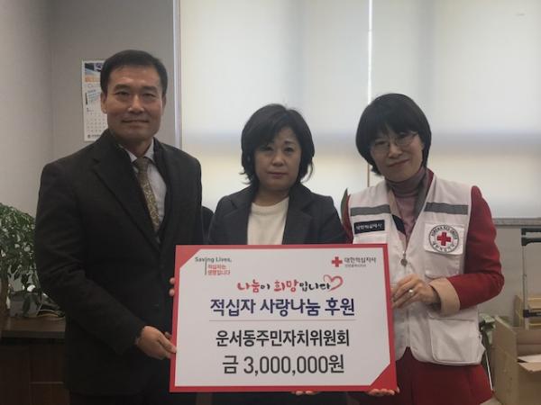 인천 중구 운서동 주민자치위원회는 지난 26일 대한적십자사인천지사에 2019년 적십자 특별회비 300만원을 전달했다고 밝혔다.