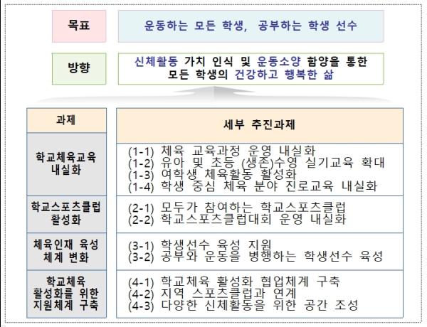 교육부는 ‘운동하는 모든 학생, 공부하는 학생선수’ 육성을 위해 제2차 학교체육진흥 기본 계획을 12월 27일 발표했다.