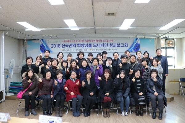 의정부시 신곡1동 행정복지센터 복지지원과는 지난 26일 3층 회의실에서 희망넝쿨 모니터단 자원봉사자들과 함께 ‘2018년도 신곡권역 희망넝쿨 모니터단 성과보고회’를 개최했다.
