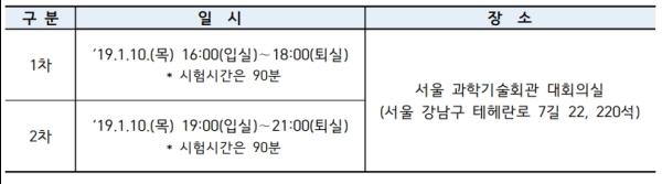 2019년 1월 10일, 서울 과학기술회관에서 시행