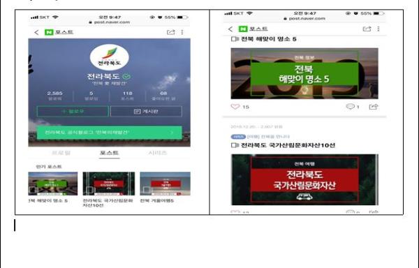 특히 지난 4월 ‘현지인이 추천하는 맛집 5’ 포스팅과 10월 ‘전라북도 단풍명소 5’ 포스팅은 각각 네이버 메인 화면에 노출되면서 하루 동안 1만회 이상의 조회 수를 기록했다.