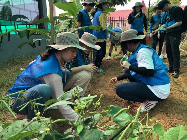 한농대 학생 봉사단은 농업 전문 교육을 받은 학생들의 특징을 살려 캄보디아 프놈펜 지역 내 한 유치원을 방문해 텃밭을 조성해 상추와 시금치, 메리골드, 민들레 등을 심고, 지역 아이들에게 재배방법 등을 전수하고 있다.