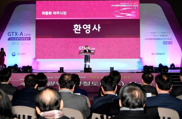 최종환 파주시장은 축사를 통해 “지난 10년간 GTX 파주출발을 위해 파주시민, 국회의원, 시의원 등 46만 시민 모두가 많은 노력을 해 주셨고 그 노력의 결실인 착공식에서 모든 분들과 함께 기쁨을 나누고 싶다”며 ”인구 70만명이 거주할 파주시에 GTX 뿐만 아니라 3호선 파주연장 사업, 고속철도의 파주연장도 빠른시간내 추진해 파주시가 한반도 평화수도로서 통일한국의 중심지로 발전할 수 있도록 모든 역량을 다해 나가겠다“고 말했다.