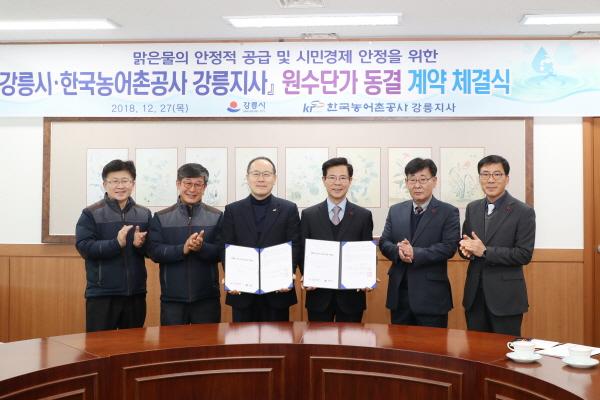 강릉시은 오봉저수지 관리 주체인 한국농어촌공사 강릉지사와 상수도 원수 공급단가를 2020년까지 동결 연장하기로 합의했다.