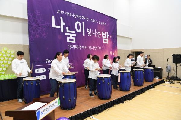 하남시장애인복지관 “나눔이 빛나는 밤” 행사는 1부 한울림 색소폰 동호회의 식전공연을 시작으로 김상호 하남시장, 방미숙 시의회의장, 강성삼 시의회부의장, 최종윤 더불어민주당 하남시지역위원장, 운영교회인 동부제일교회 임은빈 목사, 정병용 시의원, 이영아 시의원, 김낙주 시의원, 이영준 시의원이 참석한 가운데 복지관 연간 사업 보고영상, 청년대학 및 프로그램이용자의 난타공연, 직업재활 훈련생의 방송댄스에 이어 복지관 직원들의 촛불 점등식 및 장미꽃 선물전달 등 1부 행사를 즐겁고 감동적인 시간을 가졌다.