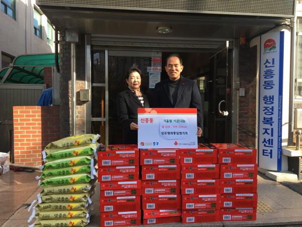 선수경 신흥동장은 “지역을 위해 도움을 줄 수 있는 방법에 대해 늘 고민하시다가 좋은 기회를 마련하여 기탁을 해주셔서 매우 감사하다”며, “겨울철 더 힘든 이웃을 위해 잘 쓰겠다”라고 밝혔다.
