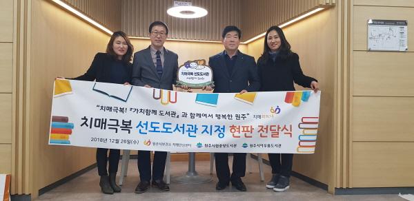 원주시 치매안심센터는 지난 26일 원주시립중앙도서관과 아우름도서관을 치매극복 선도 도서관으로 지정하고 현판을 전달했다.