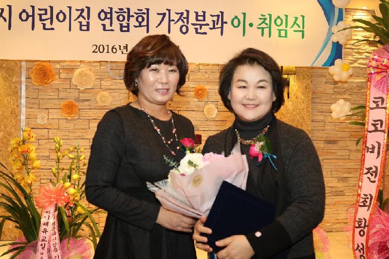 이날 광명시 어린이집연합회 가정분과 제20대 오희령 회장에서 제21대 박명순 신임회장 이.취임식 행사에는 강수영 가정분과 총무의 사회로 진행되었고, 강원미 경기도가정어린이집연합회 가정분과 위원장을 비롯해 양기대 광명시장, 백재현. 이언주 국회의원, 김성태. 박승원. 정대운. 경기도의원, 조화영. 고순희. 안성환. 시의원, 새누리당 광명(갑) 정은숙 당협위원장, 이효선 전)광명시장, 김영석 광명시출입기자협회장, 등이 참석하여 축하를 하였다.