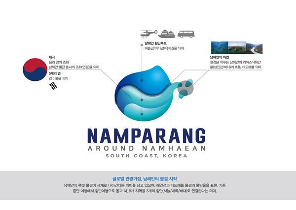 남해안 통합관광브랜드 “남파랑”은 아름다운 경관을 따라 이어지는 푸른 바다와 시원한 파도가 매력적인 남해안 여행을 표현하고 있으며, 남해안의 첫 글자 남과 남해안의 대표연상 이미지 파랑을 결합하여 남해안이 쉽게 연상되고 기억하기 편한 이름이다.