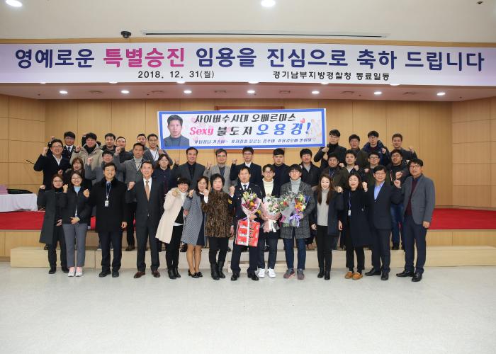 특히 형사과 광역수사대 임성혁 경감은 1조 1천억원대 도박사이트 운영 조폭 108명을 검거한 공로로, 사이버수사대 오용경 경감은 음란물 불법 유통 웹하드 실소유주를 비롯하여 총145명을 검거한 공로를 각 인정받아 경감으로 특진했다.