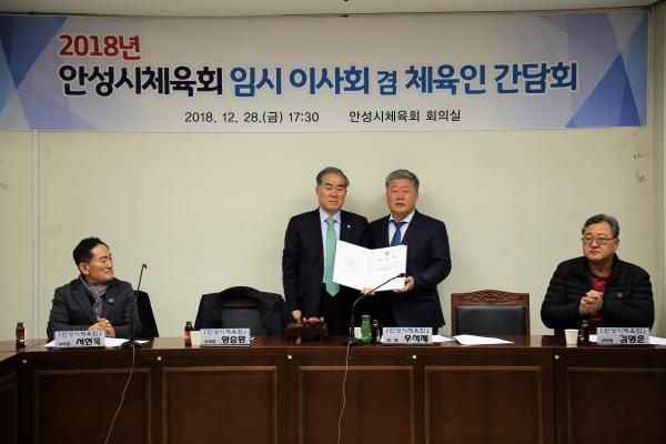 또한 안건으로 상정된 2019년 1월중 안성시체육회 임시 대의원총회 개최의 건을 의결하여 결원된 임원을 추가 선임할 예정이며 내년도 사업계획에 대하여도 다양한 의견을 나누었다.