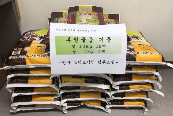 원주토닥토닥맘협동조합과 ㈜낭만사는 연말연시를 맞아 지난 12월 31일 원주 여성폭력피해자보호시설에 60만 원 상당의 쌀 200kg을 전달했다.
