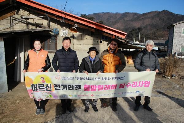 한화호텔&리조트 양평은 지난 12월 28일 청운면 기초수급 홀몸 어르신 가정을 대상으로 ‘어르신 전기안전 희망릴레이’ 집수리 공사를 실시했다.