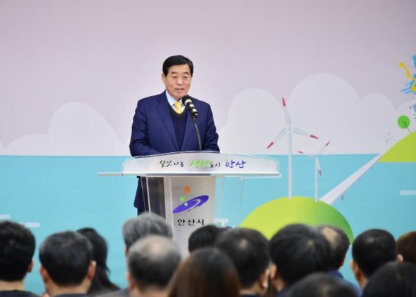 이날 시 공무원 250여명이 참석한 가운데 열린 시무식에서 윤화섭 안산시장은 "올해는 그동안 이룬 많은 성과를 더 발전시키고 시민의 삶의 질을 향상시키겠다"며 "안전과 일자리 창출, 복지에 만전을 기하겠다"고 포부를 밝혔다.