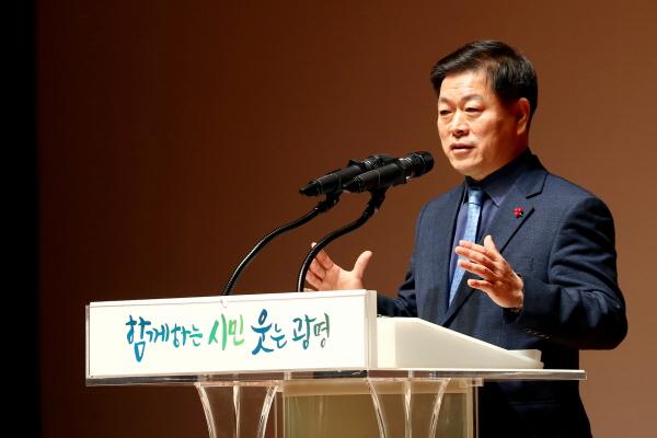 박승원 광명시장이 2일 광명시민회관 대공연장에서 열린 시무식에서 광명시 조직 혁신 방안 마련을 위해 ‘공무원 100인 원탁토론’을 제안했다.