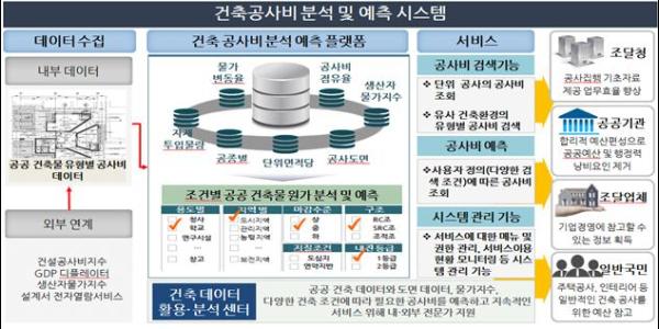 조달청은 공공 건축사업 초기 합리적인 공사비를 예측할 수 있는 '공공건축 공사비 분석 및 예측 시스템' 구축을 마치고 온라인 서비스인 '공사비 정보광장기반 공공서비스 촉진사업' 과제로 선정되어 약 13억 원의 예산을 지원받아 약 6개월 동안 추진됐다.