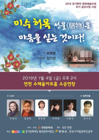 연천문화원은 오는 4일 오후 2시부터 연천수레울아트홀 소공연장에서 연천군 관내 주민들과 학생들의 문화예술 체험을 위한 연극 ‘미수허목 선물은 마음을 싣는 것이다.’를 공연한다.